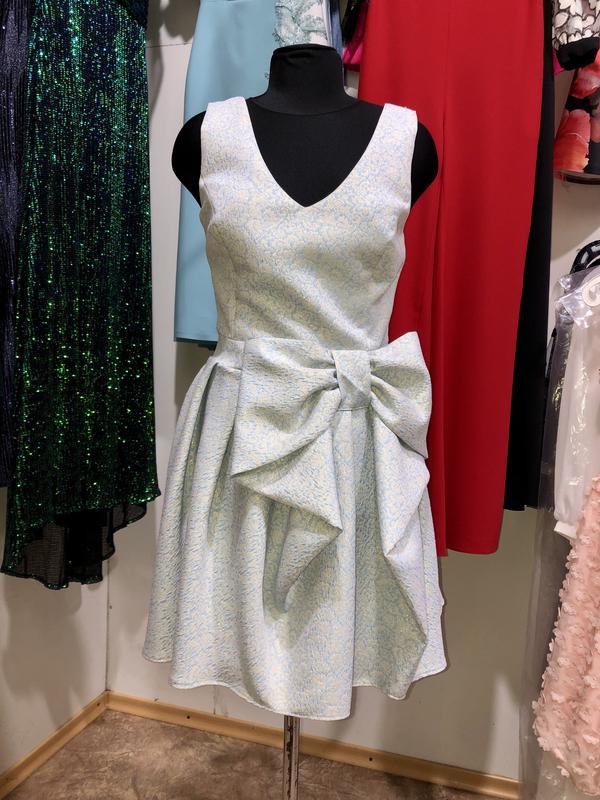 Платье с юбкой-солнце Размер: 38 Замеры: грудь-до 90см, талия-72см, длина-90см, длина от талии-47см Цвет: небесно-голубой с золотой люрексовой нитью Качество отличное Производитель Турция