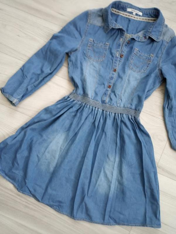Джинсовое платье, красиво смотрится. Джинс лёгкий, талия резинка, замеры на фото