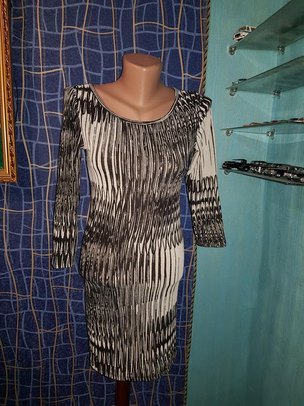 Платье мини,с люрексом,на спинке огромный вырез,сидит по фигурке,не бедра не больше 95 см.и рост не выше 165,а то будет сильно короткое.Рукав 3/4