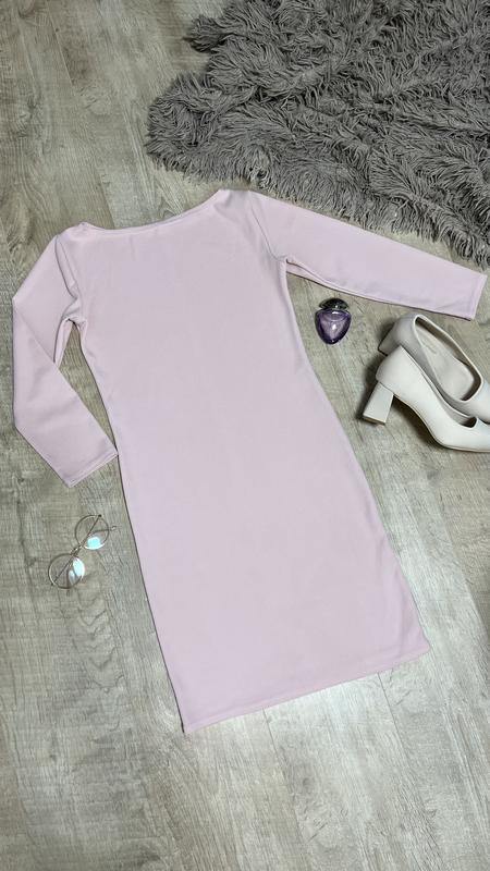Гарна сукня в рубчик ніжно-рожевого кольору. Гарно сідає на фігуру. Стан чудовий, є один маленький нюанс, дивіться фото номер 3. Заміри на фото.