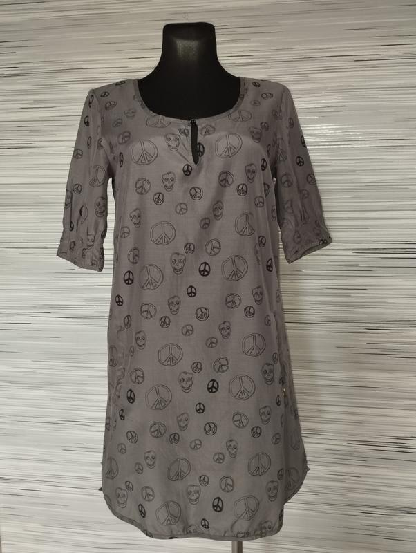 Maison Scotch – це нова лінія амстердамського бренду Scotch & Soda, у центрі уваги якої невимушена жіночність. Одягу цієї лінії характерна естетика рок-шику. Maison Scotch (Мейсон Скотч), він же Scotch & Soda (Скотч енд Сода) – це нідерландський бренд. maison scotch la femme selon marie (дружина шотландської Марії) Міні сукня з принтом -знак миру -pacific-міжнародний символ миру та черепками та славнозвісною копією підвіски-монетки на ньому(біля карманчика) сукня А-силуета,лаконічного крою може бути як туніка розмір S довжина 90 см ПОплечі 39 см ПОГ 50 см ПОТ 51 см ПОБ 52 см чудово підійде для невисокого зросту рукав 3\4 бірка зі складом відсутня,але по тканині видно,що підкладка-бавовна,верх - шовк або змішаний шовк з віскозою ніжна м'якенька дуже приємна тканина тактильно бренд дорогий,якісний і все речі з натуральних матеріалів ІДЕАЛЬНОГО СТАНУ,абсолютно