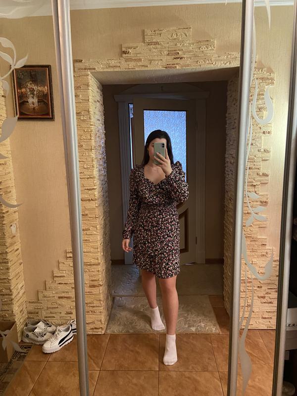 Короткое, легкое, летнее платье с небольшим декольте. Присущая подкладка, поэтому не просвечивается. Размер XS, но подойдет на S, если большая грудь. По детальной информации - убедитесь)