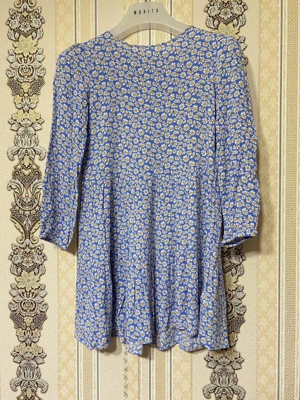 Стильное лёгкое летнее платье, короткое голубое с белым платье, сукня