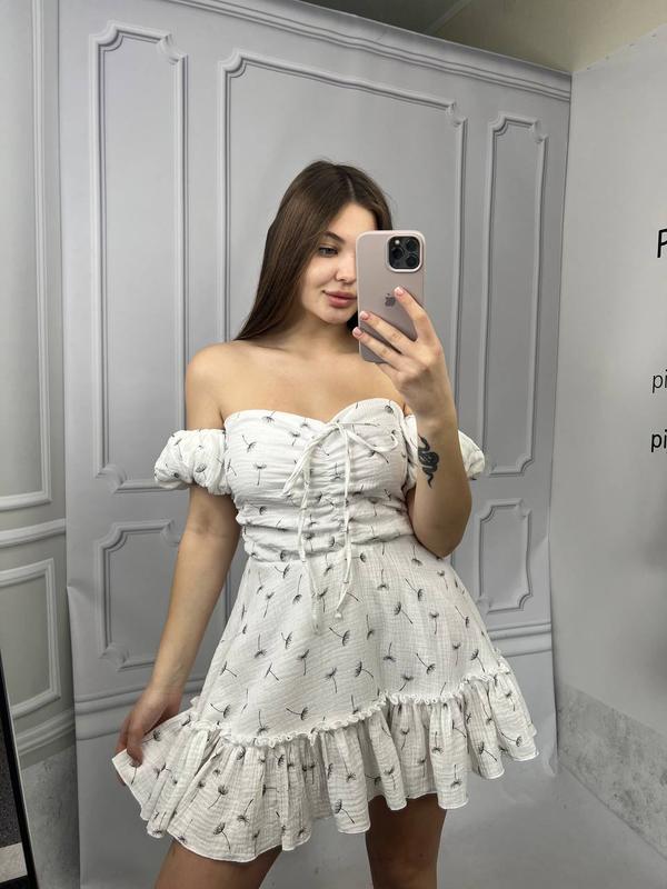 🤍Легкое, нежное платье с коротким рукавом. Создана из натуральной ткани быстро станет твоим фаворитом. Женственность как искусство, которое мы воплощаем через одежду. ✔️Цвет: одуванчики ✔️Ткань: Муслин ✔️Код: 120/23 ✔️Размер: XS/S • M/L 💵Цена 1900 грн На модели размер XS/S