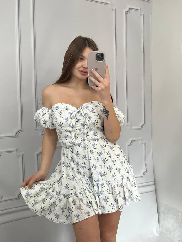 🤍Легка, ніжна сукня з коротким рукавом. Створена з натуральної тканини швидко стане твоїм фаворитом. Жіночність як мистецтво, яке ми втілюємо через одяг. ✔️Колір: синій барвінок ✔️Тканина: Муслін ✔️Код: 120/23 ✔️Розмір: XS/S • M/L 💵Ціна 1900 грн На моделі розмір XS/S