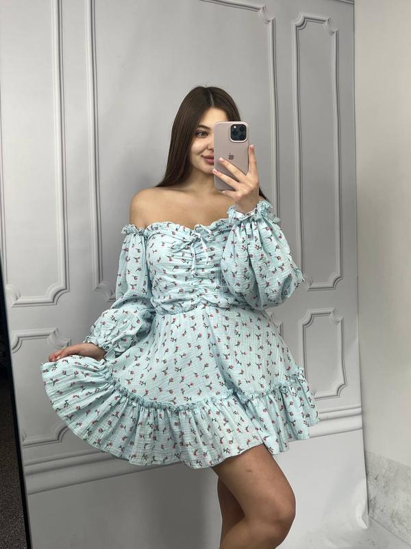 🤍Легкое, нежное платье с длинным рукавом. Создана из натуральной ткани быстро станет твоим фаворитом. Женственность как искусство, которое мы воплощаем через одежду. ✔️Цвет: голубой с красными цветами ✔️Ткань: Муслин ✔️Код: 120/23 ✔️Размер: XS/S • M/L 💵Цена: 1900 грн На модели размер XS/S
