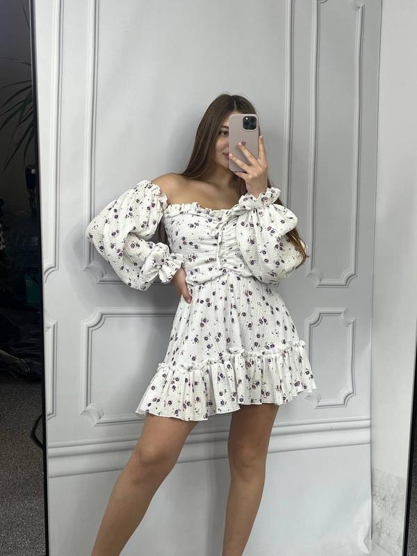 🤍Легкое, нежное платье с длинным рукавом. Создана из натуральной ткани быстро станет твоим фаворитом. Женственность как искусство, которое мы воплощаем через одежду. ✔️Цвет: фиолетовый цветок ✔️Ткань: Муслин ✔️Код: 120/23 ✔️Размер: XS/S • M/L 💵Цена: 1900 грн На модели размер XS/S