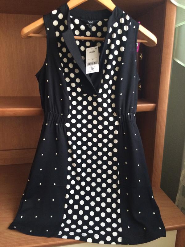 Платье в горошек, смотрится супер красиво!!!Длина 77 см, ширина по груди 44 см, ширина по талии 38 см ( по бокам резинка),ширина по бедру 47 см
