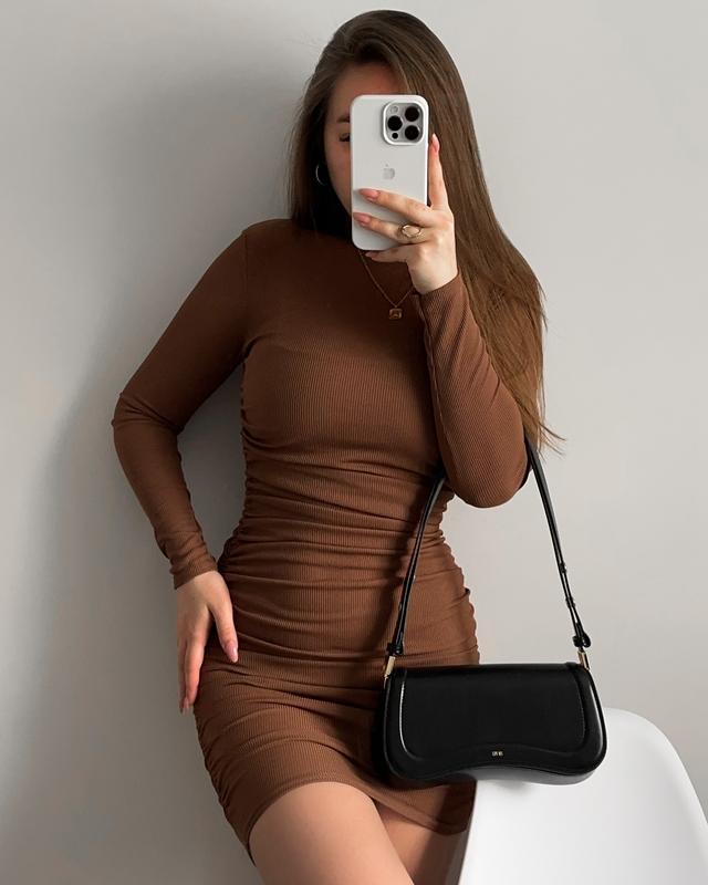 Новое коричневое платье от plt Качественный материал, не просвечивает Плечевые накладки Размер М