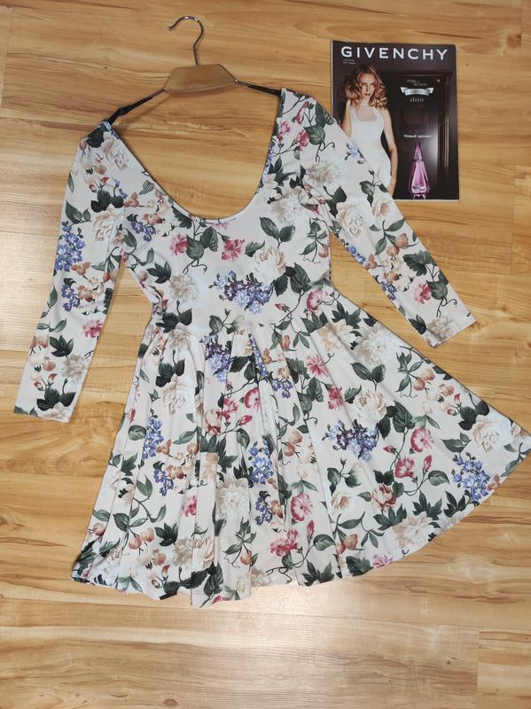 Короткое стильное платье с глубоким вырезом на спине,эластичное, удобное на ощупь.Довжина от плеча 82см., от плеча до талии 39см.рукав 46см, ПОТ38см,ПОГ37см., красиво тянется
