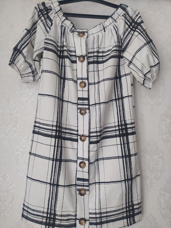 Продам стильне плаття з бавовни в ідеальному стані, розмір М, L. Рукав ліхтарик, зверху резинка можна робити відкриті плечі. Бренд вказаний для привернення уваги!!! ПОГ-49см ПОТ-51 см Довжина-84 см Довжина рукава-35 см
