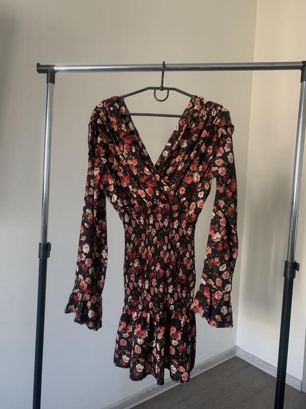 Платье с цветочным принтом Nasty Gal Размер - S [ 36 ] Стан - идеальный За счет ткани жатки в области талии и бедер не просвечивается Замеры: Рукав- 65 см, длина - 84 см. пог- до 50 см, пот - до 40 см, поб - до 50 см. Идеальный вариант на весну/ лето