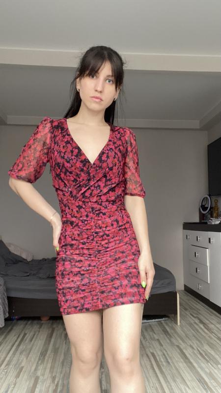 платье mohito в цветочный принт с сборкой на бедрах, написано размер xxc,но идет на хс и маленькую с,надеть на параметры 157/87/63/93