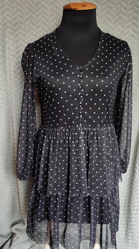 Платье reserved Размер м Первый слой подкладка, сверху шифон в горошек Рукава прозрачные Манекен 95-70- бедра свободные (лучше до 104 см) Немного тянется