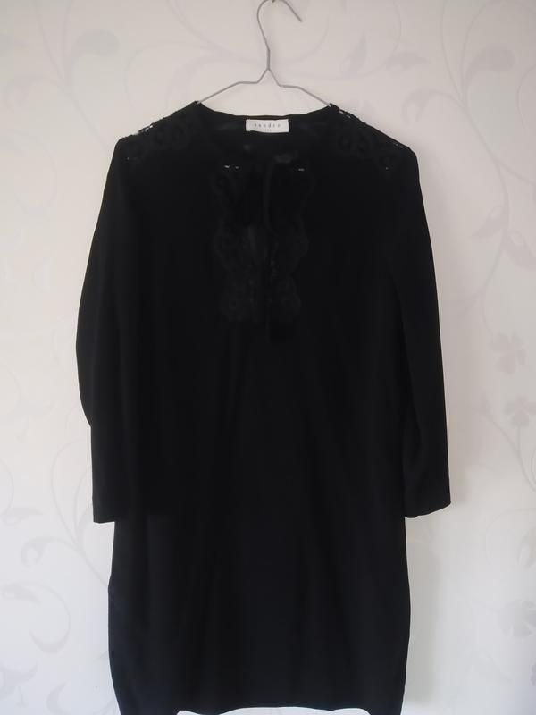 Платье ровного фасона, в идеальном состоянии, украшено кружевом, эластичный материал плечі-40 длина рукава -50 НОГ-48 НОБ-48 длина -88