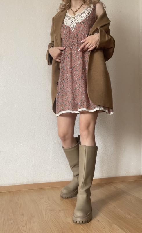 Сукня з флористичним принтом, що підкреслює талію (наявні зав’язки). Оздоблена мереживом у зоні декольте, знизу, а також по краях кишень. Сукня виготовлена з легкої тканини з підкладкою. На прохолоднішу погоду гарно виглядатиме з кардиганом/тренчем поверх неї. Довжина виробу - 81см.