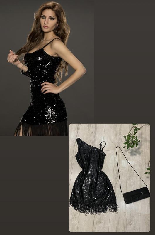 Фото На тілі немає) На моделях наприклад заміри на фото)не щільне,не тягуче)бірки зрізані,підійде на xs s m орієнтуйтеся по замірах) Довжина 80-88 см) Пог 42 см) Пот 48 см) Знизу 52-54 см) сукня вільного фасону по фігурі ,попереду чорні блискітки паєтки)ззаду чорна тканина-злегка просвічує на одне плече широка брителя на одному вузенька) У складі еластан поліестер) З нюансів-трохи деформована тонка бретеля,її можна замінити або не вдягати) Продається так як є без притензій і без повернення)