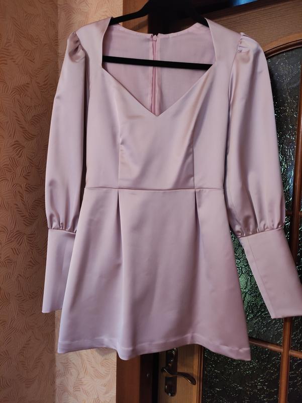 стильное мини платье с пышными рукавами и красивым вырезом на груди