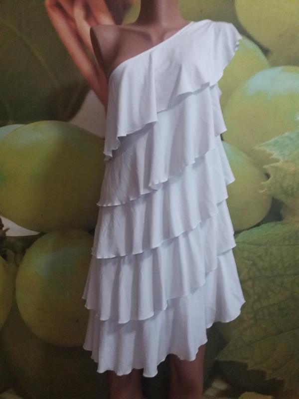Белоснежное платье на одно плечо, тяжеленький трикотаж "масло" + необычный крой! Платье создает впечатление, буд-то Вы завернуты в белоснежный волан! Нереально красивое и эффектное. Одето 1 раз, без нюансов и следов одевания. Подойдет на грудь до 96см.