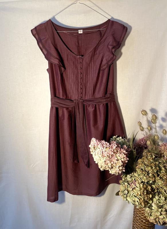 Платье летнее. Из легкой ткани, с поясом, есть подкладка. Бурдового цвета.