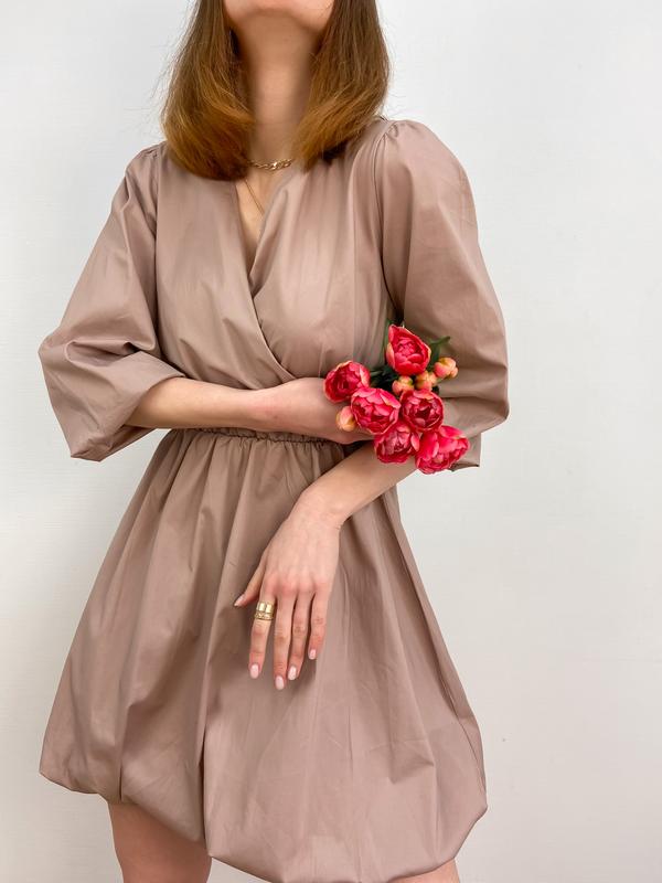 Бежевое летнее платье приталенного силуэта