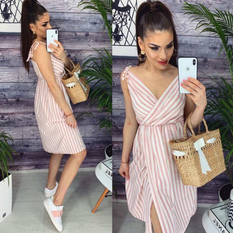 Летний сарафан в полоску выполнен из воздушного софта. Этот материал практически невесом, имеет приятную текстуру, а при контакте с кожей не вызывает дискомфортных ощущений. Также софт хорошо пропускает воздух и не задерживает влагу. Модель летнего сарафана своим кроем напоминает платье в греческом стиле: - свободный крой; - завышенная талия; - V-образный вырез декольте. Благодаря тонкой резинке, которая вшита в области талии, юбка платья красиво драпируется мелкими складочками. Длина бретелей легко регулируется, поэтому модель подойдет на любой рост. Ненавязчивой сексуальности образу придает импровизированный разрез сбоку. Материал: софт ⠀ Замеры: Длина по спинке: 72 см Длина от плеча (бртельки регулируются): приблизительно 88 см ⠀ Размеры: 42-44, 46-48, 50-52 ⠀ Цвета: бежевый, черный