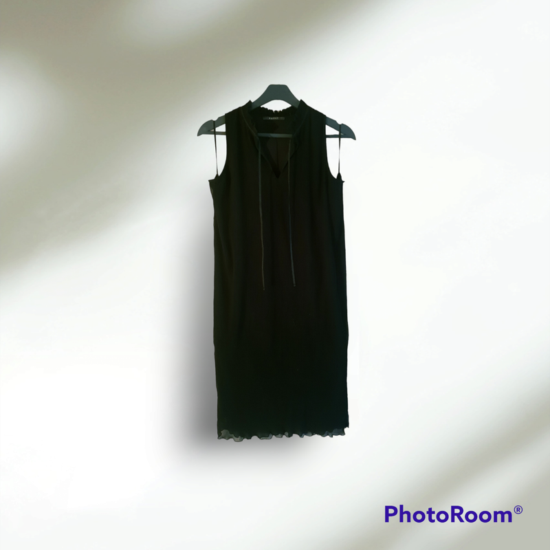 платье в идеальном состоянии. сможет скрыть все недостатки (особенно, если они есть😎) насыщенный черный цвет. на подкладке. имеет прямой крой, пог-пот-пос 100(в свободном состоянии, ткань хорошо тянется). длина 95.