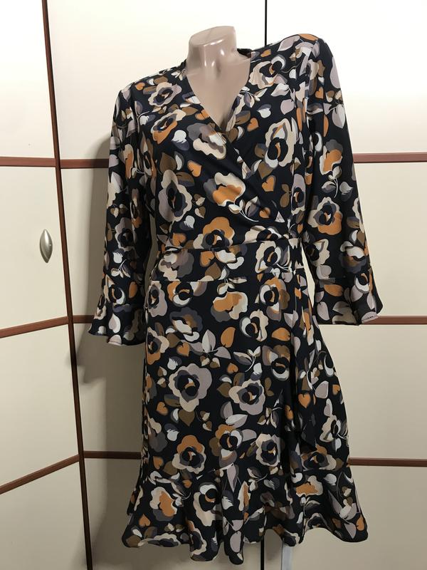 Красивое платье,размер М-L(указанный 12)длина 95см,длина рукава 50см,пог 51см,пот 42см,поб 53см,сбоку замок,трохи тянется,стан новой вещи.