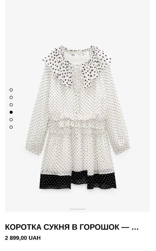 В наличии Нова Короткое белое платье в горошек, платье в горох с рюшами из новой коллекции Zara размер Xs Оригинал с бирками