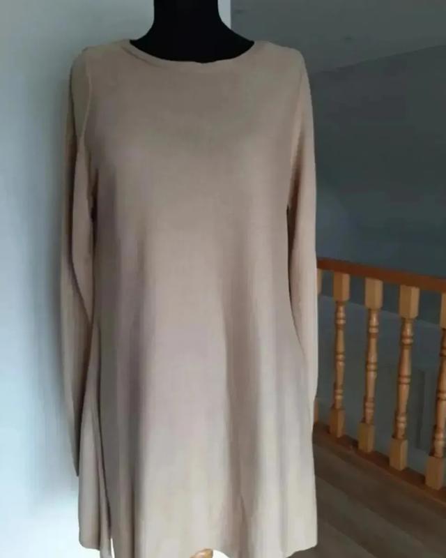 Платье бренда MARKS & SPENSER бежевого цвета. Бирка со составом срезана, но на ощупь в виде вискоза. Есть микроскопическая пятнышка на последнем фото. В цене учтены. Размер S-M. Замеры: от проймы до проймы-50 см, пот-47,5 см, в бедрах свободно, длина рукава-70 см, из них 11 см манжет, длина по 78,5 см.