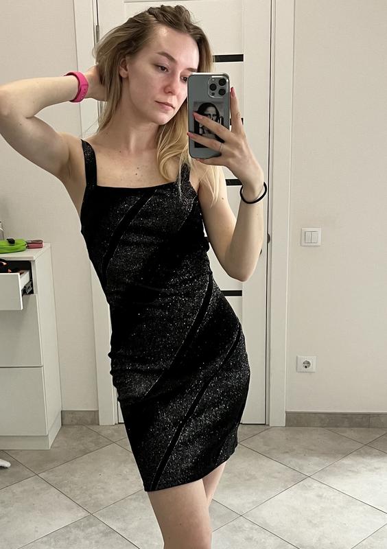Новое черное платье с блестками сукня приталеного силуету выполнена из велюрового трикотажа Размер : S Открытая спинка
