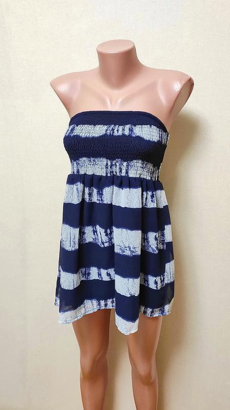 Легкое платье, на грудях резинка очень хорошо тянется. Внутри есть силиконовые вставки. Юбка трапеция. Есть подкладка. Длина 55 см, ПО груди резинка (в нормальном состоянии не растянутом) 34 см.