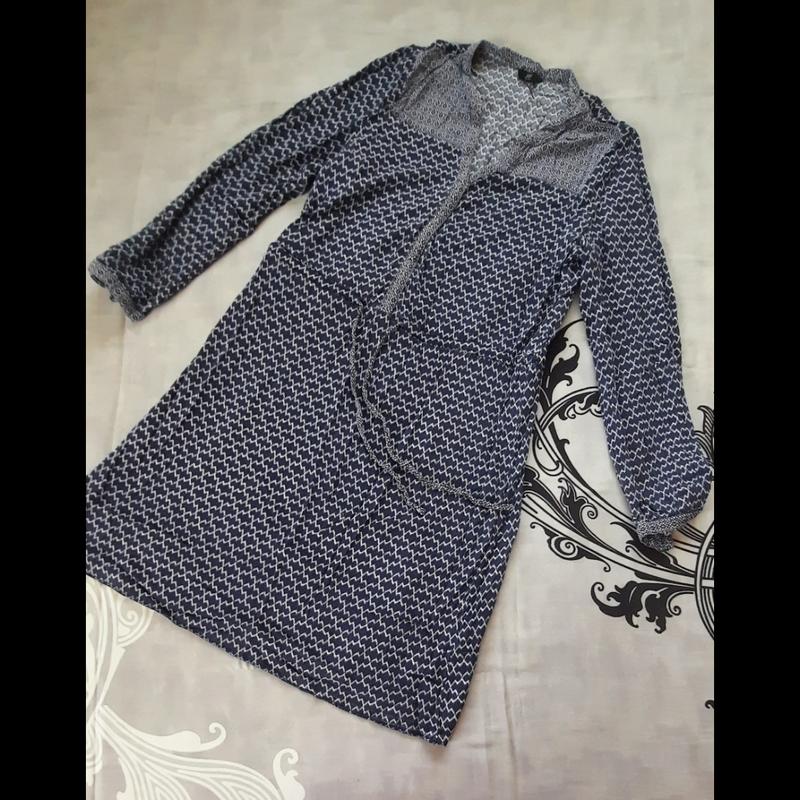 Платье 100%вискоза. Сток, без бумажной бирки. Ткань мягкая жатка. Длинный рукавчик, на поясе регулируется вшитым пояском-завязкой. Пог 48 Пот 43 Поб 50 Длина 90 Рукав 60