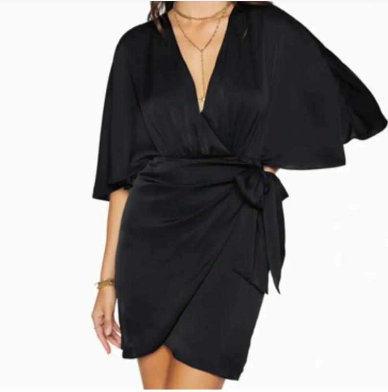 Новое мини платье на запах от AQ/AQ, широкий рукавчик, цвет черный, размер подойдет на S, M.