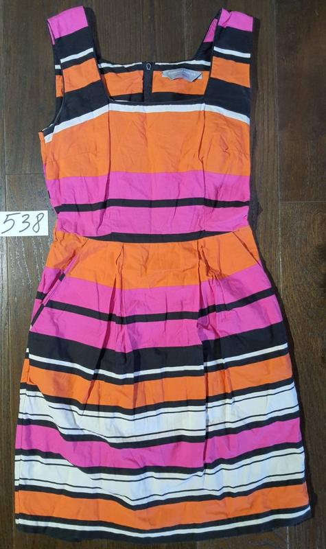 Яскрава смугаста сукня. Наткоальна тканина. Довжина 84см Від плеча до плеча 33см Напівоб'єм грудей 36см Напівоб'єм талії 35мм Напівоб'єм по низу 48см
