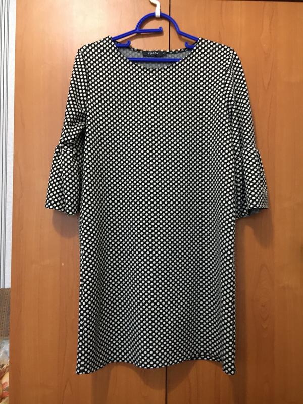 Платье в горошек, размер л . длина 85 см , длина рукава 42 см , пог 50 см , пот 50 см поб 52 см , ткань тянется