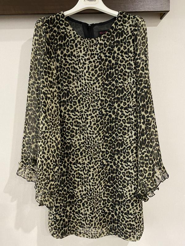 Платье женское с леопардовым принтом свободного кроя на подкладке. Размер 34-36. Длина 80 см.