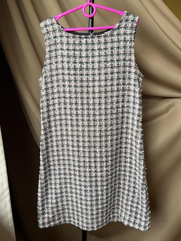 Твидовое платье, розового оттенка. Размер S. Сидит по фигуре. Застегивается на молнию по спинке. Выглядит очень элегантно. Длина 76см. Полуобхват талии 40 см.