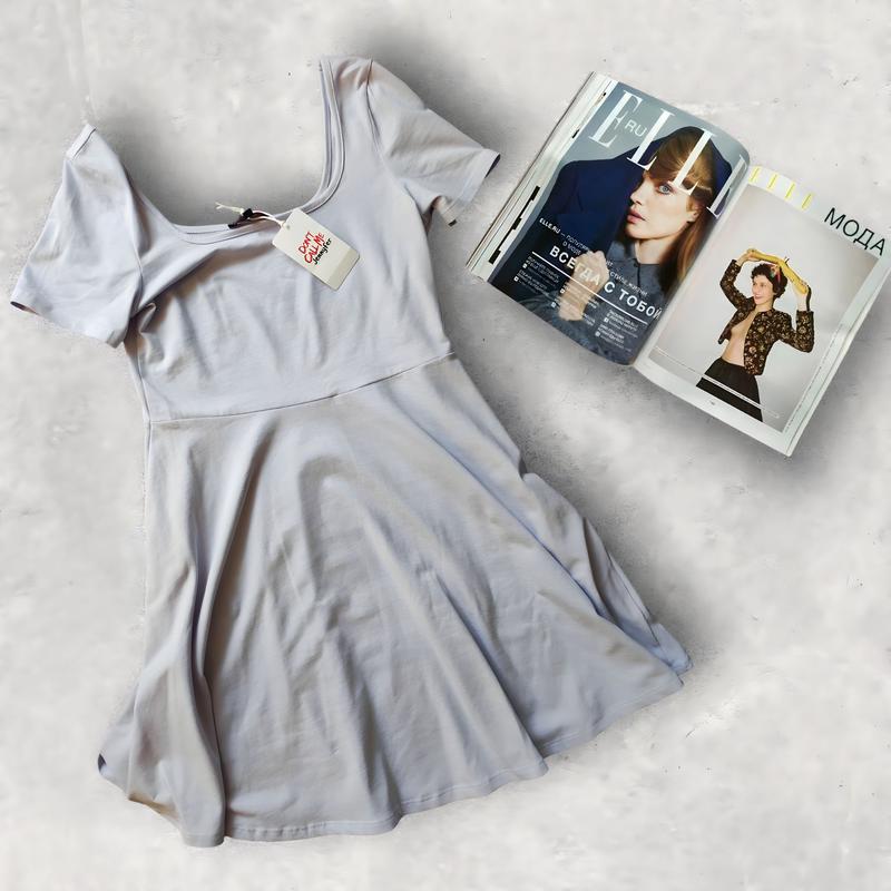 Платье указан размер L, но маломерит на размер. одето на S рост 164см, грудь 86, талия 68, бедра 93. Ткань нежная, приятная к телу, легкая ткань.