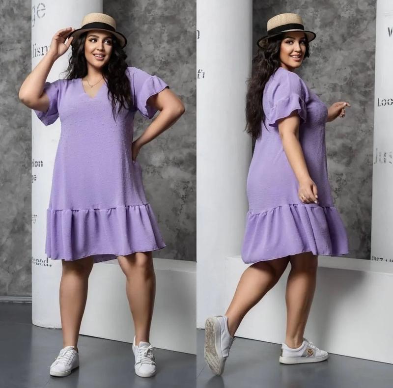 Модель: 1093 Ткань: американский креп Размер: 48-50, 52-54, 56-58, 60-62 Цвет: сиреневый, черный, зеленый, беж Длина 101 см Платье мега легкое, ткань приятная, легкая, не светится, не парит.