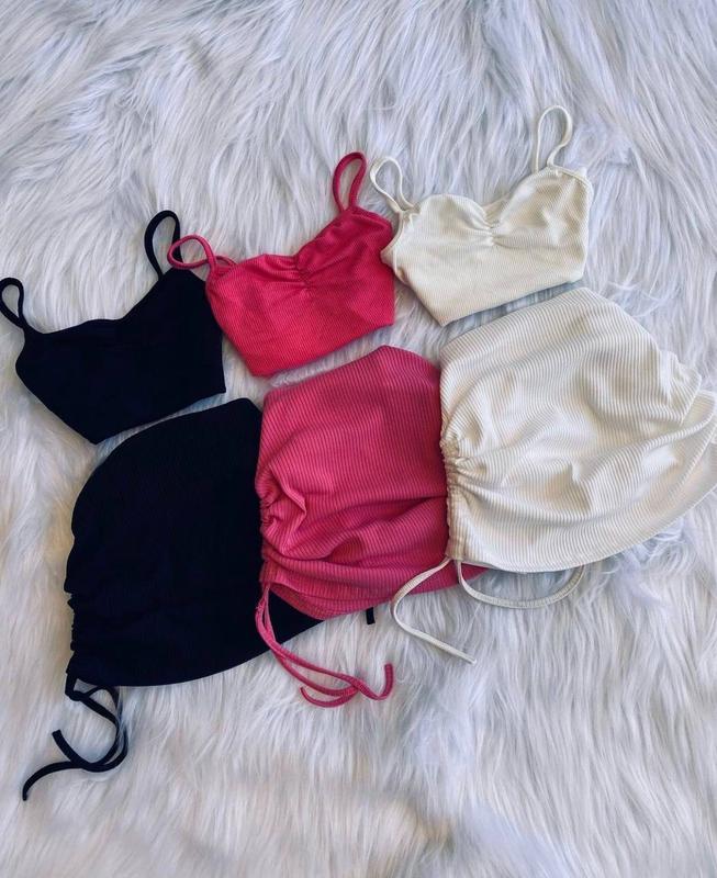 Костюм (топ и юбка) Ткань: рубчик Турция Размер: 42-46 (onesize) Цвет: черный, молочный, малиновый 💸Цена: 459 грн ❤️🔥Стильный обтягивающий костюм: топ со сборками и юбка с затяжками Длину юбки можно регулировать. Качественная ткань. ПАРАМЕТРИ (добре тягнеться): Топ: ОГ 85-96 см Длина 35 см Юбка: ОТ 62-72 см ОБ 88-100 см Длина 35-55 см