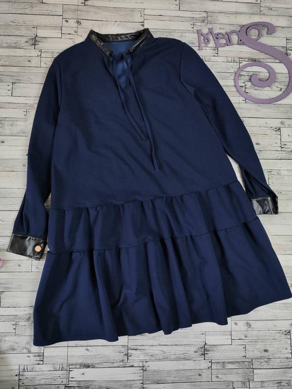 Женское платье темно-синего цвета с кожаными вставками размер 50 xl
