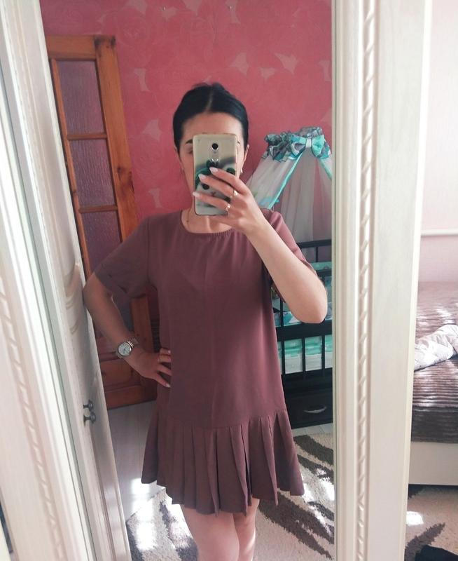 Платье с плиссированной юбкой, коротким рукавом Размер 42 Цвет - капучино.