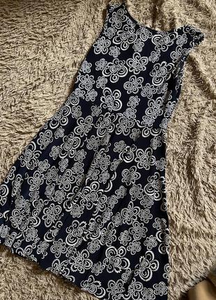 Платье синего цвета с узором, размер S-M, длина до колена
