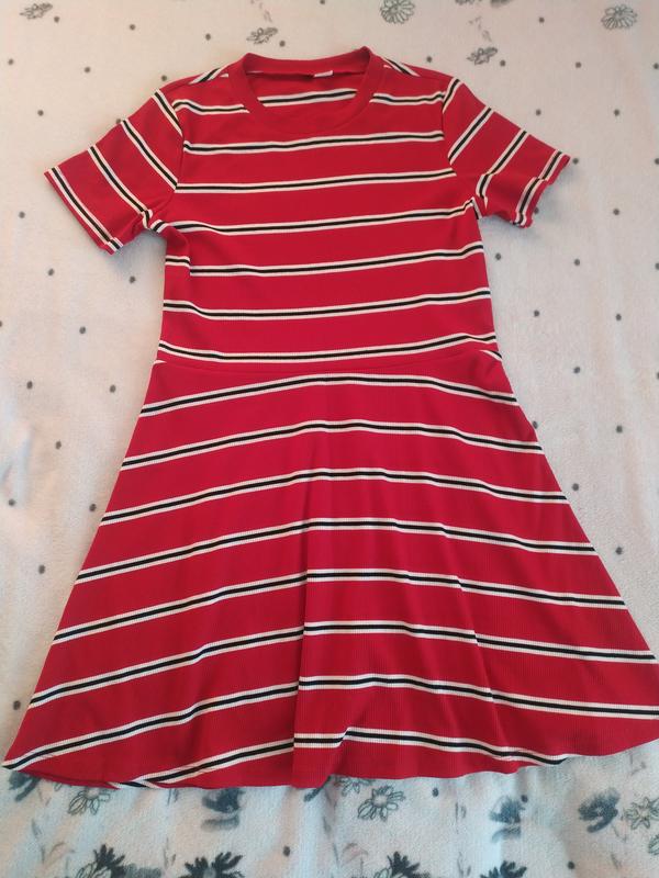 червона міні сукня від h&m , підійде на розмір м, тягнеться є фабричний брак - не збігаються деякі смужки по шву