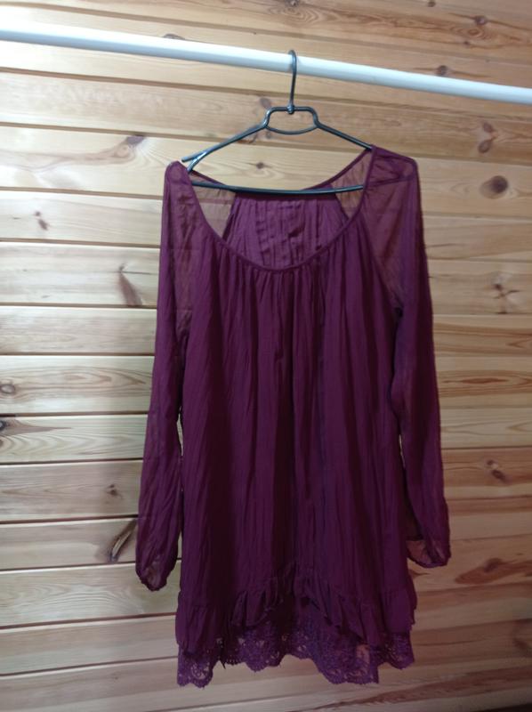 платье свободного кроя,можное под ремешок или идеально подойдет для беременной мамы.рукавчики прозрачные.Колир темный бордо, фото не передало полностью.