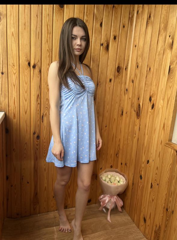 Невероятно нежное мини платье💙голубого цвета😍 ✔️Размер: xs-s ✔️Длина платья регулируется завязками на шее