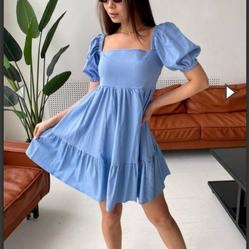 Отличное летнее платье размера М/ L. Замеры изделия: ПОГ- 42 см Талия свободно Длина от груди - 74 см Общая длина с рукавами - 88 см Длина рукава - 32 см Ширина внизу рукава по резинці 13 см, максимально тягнеться резинка до 22 см Тканина не тягнеться.