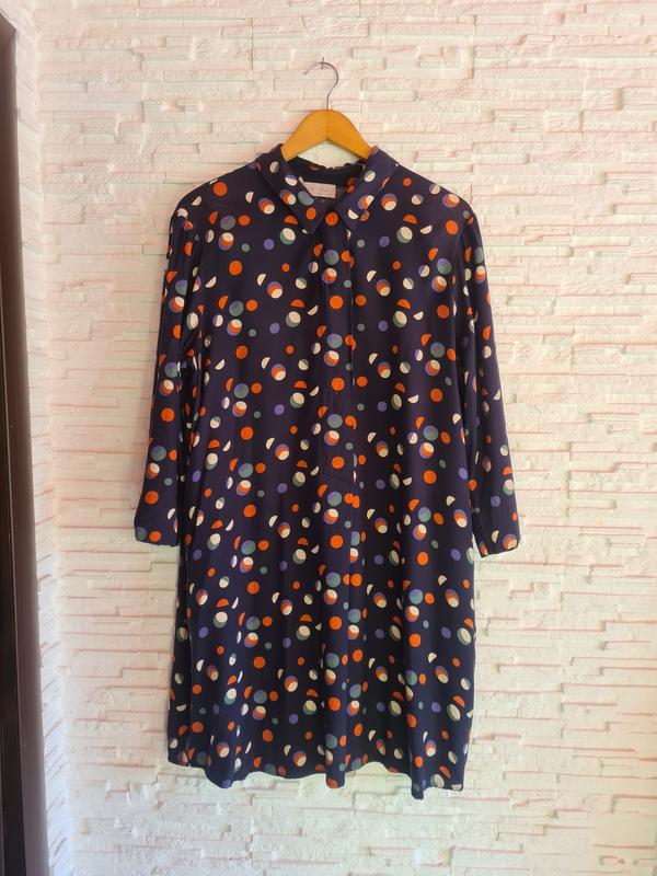 Красивое платье свободного кроя Boden размер 18. В очень хорошем состоянии, но на воротнике присутствует нюанс, виден на фото. Ткань вискоза, плотная, не тянется, не осветляет. Замеры груди 62см, бедра 67см, длина от плеча 94см