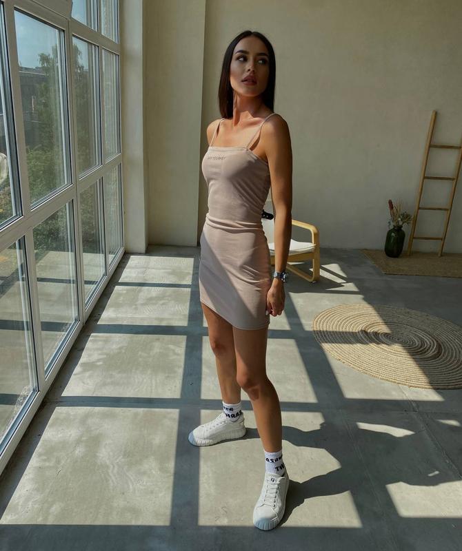📸ФОТО РЕАЛ🔝 В наявності 🔸Сукня з написом ▪️Тканина: крепдайвінг ▪️Розмір: 42-46 (універсал) ▪️Колір : бежевий 🏷Ціна 370🔥 💬Стягуючий ефект і щільна тканина👍🏻 Бретельки регулюються. Якісна накатка. ПАРАМЕТРИ Довжина 85 см ОГ 76-95 см ОТ 62-72 см Тканина добре тягнеться